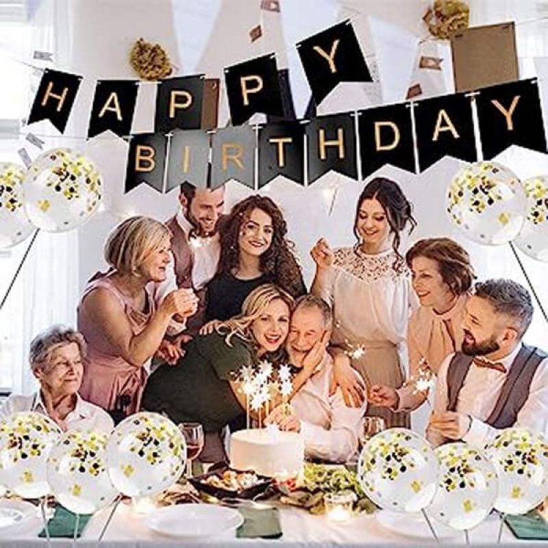 5-Piece Confetti Balloon Happy Birthday Wall Banner Black