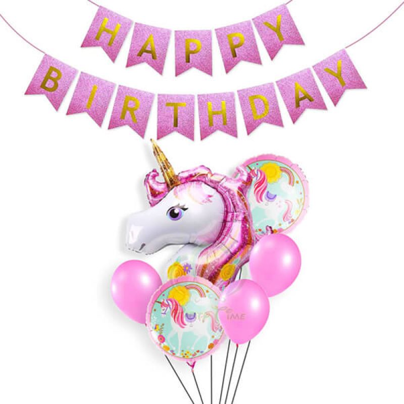 7-Pcs Unicorn Balloons With Happy Birthday Banner Set