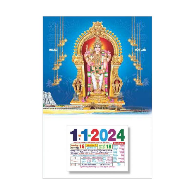 1. تقويم تاميلي يومي مع صورة واحدة مطبوعة بلون مزدوج وملتصقة على لوحات متعددة الجودة ممتازة.