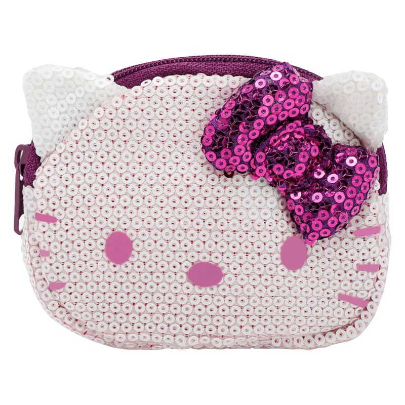 Hello Kitty D-Cut Denim Coin Purse, Purple, White