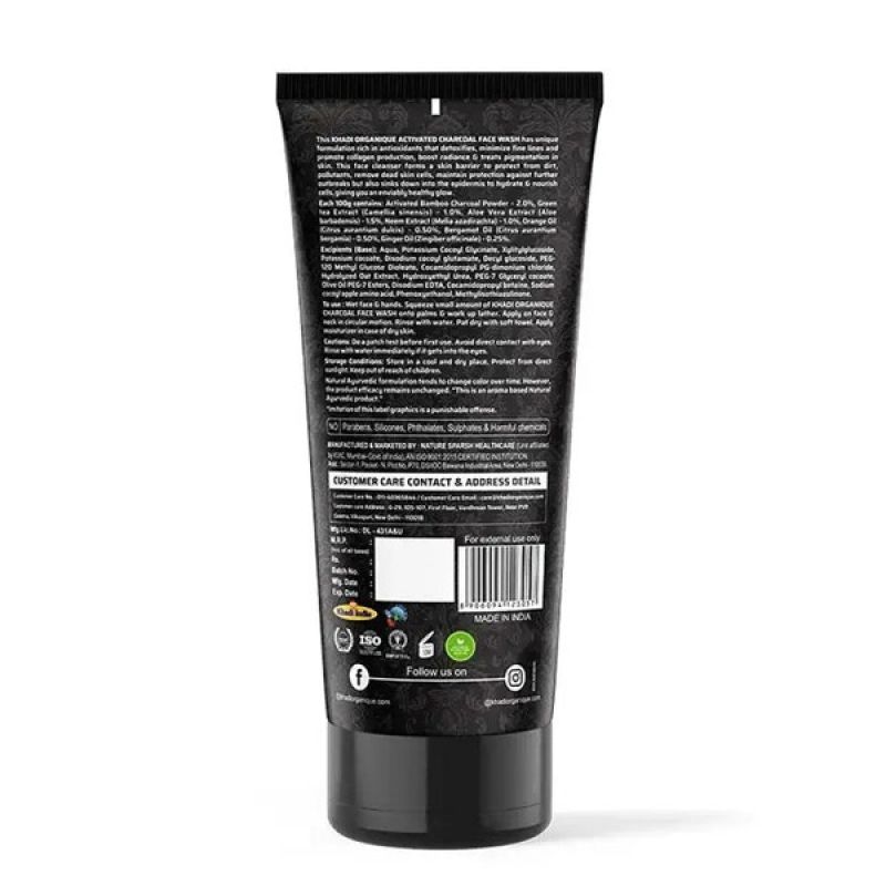 غسول الوجه بالفحم المنشط من خادي أورجانيك (خالي من كبريتات الصوديوم الصوديوم والبارابين) 100 جرام