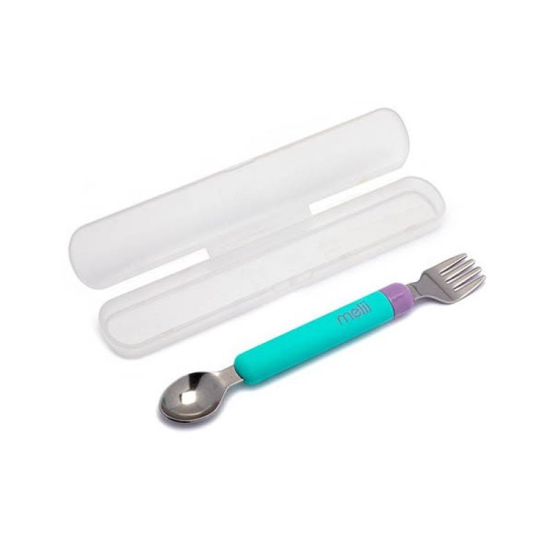 Melii - Detachable Spoon & Fork with Carrying Case - Blue & Purple