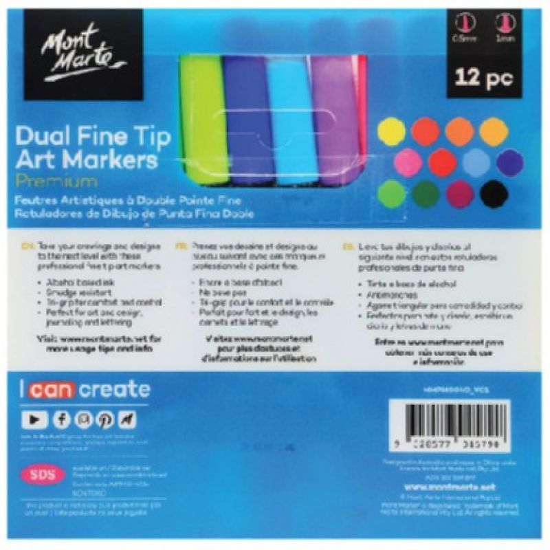 Mont Marte Art Marker Dual Fine Tip 12Pcs Alchohol Ink