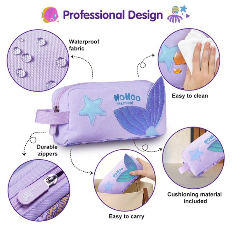 Nohoo حقيبة مقلمة للأطفال / حقيبة ملونة حورية البحر - بنفسجي