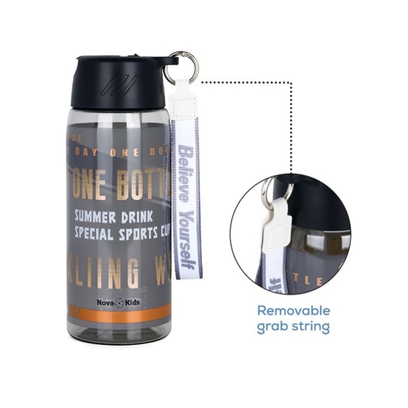 نوفا – زجاجة مياه للأطفال 750 مل مع سلسلة إمساك – أسود