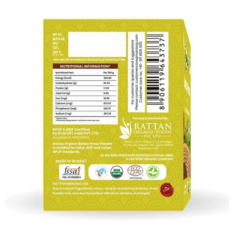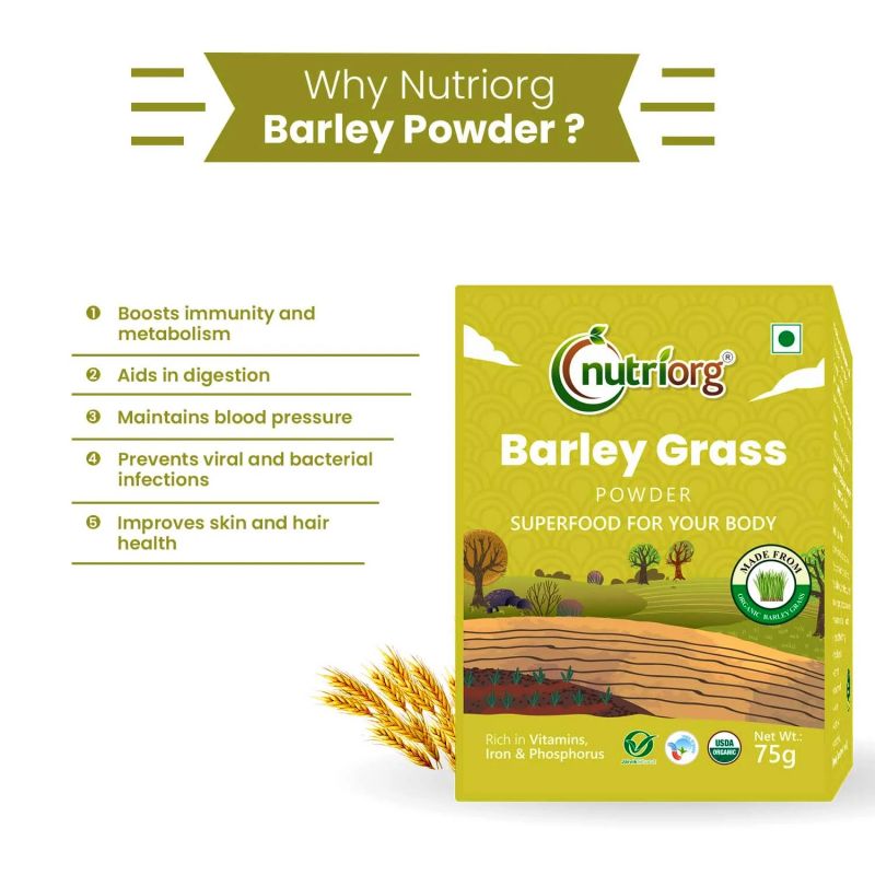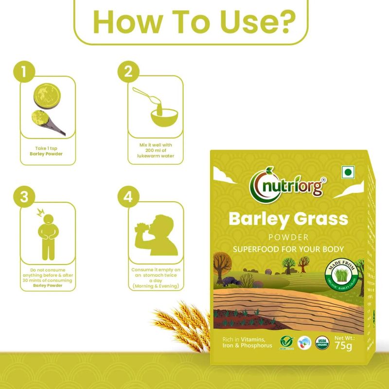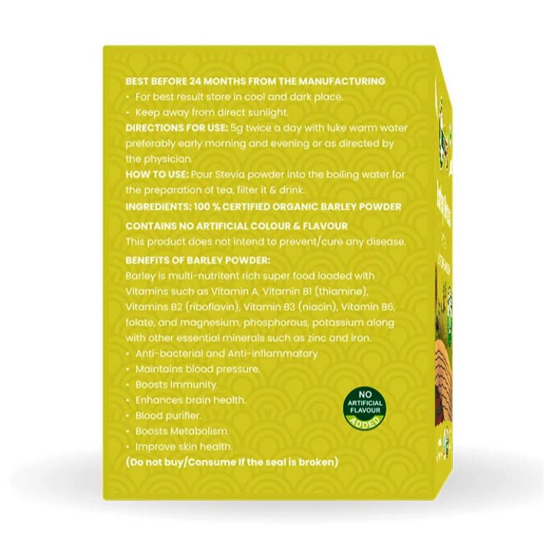//php include('more-sellers.php'); ?>مسحوق عشب الشعير العضوي المعتمد من Nutriorg مصنوع من عشب الشعير المزروع في الأراضي الزراعية العضوية المعتمدة. يعرف عشب الشعير على نطاق واسع بأنه قوة غذائية. إنه مخزن لفيتامين B1 و B2 و B12 والحديد والمغنيسيوم والكاروتين والأحماض الأمينية وبعض الإنزيمات المهمة الضرورية لجسمنا. تم اكتشاف الشعير لأول مرة من قبل البشرية حوالي 7000 قبل الميلاد عندما استخدمه الإنسان كشكل من أشكال الطعام. عشب الشعير كونه مصدرا جيدا للسيلينيوم يمكن أن يحسن بشكل كبير من صحة الجلد ومرونته. وهو مزيل طبيعي للسموم، ومحتوى الكلوروفيل وبيتا كاروتين فيه يحفز القضاء على النفايات وبالتالي تنقية الجسم. مسحوق العشب بالكاد من Nutriorg مصنوع للحفاظ على النظافة وهو عضوي 100٪ لضمان أفضل هدية صحية