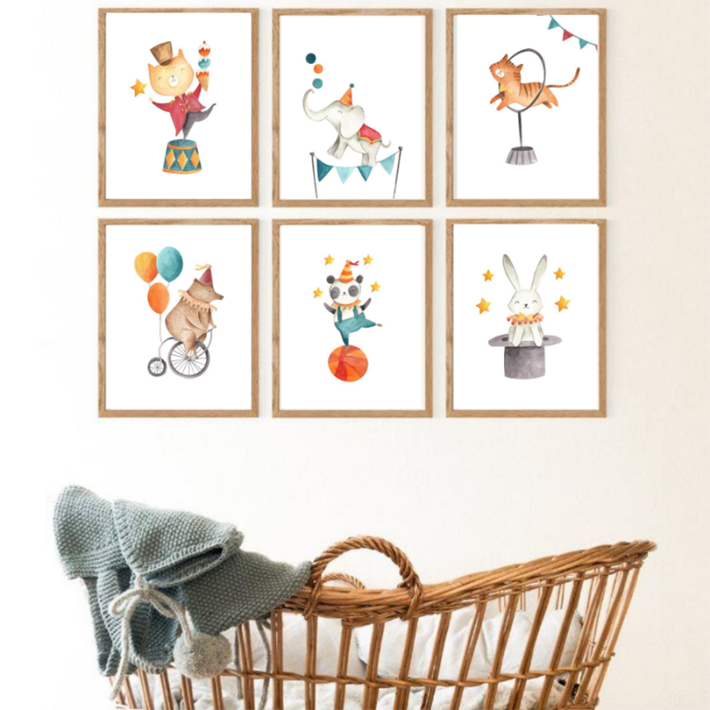 Set of 6 Circus Animals Watercolour Wall Art Prints
