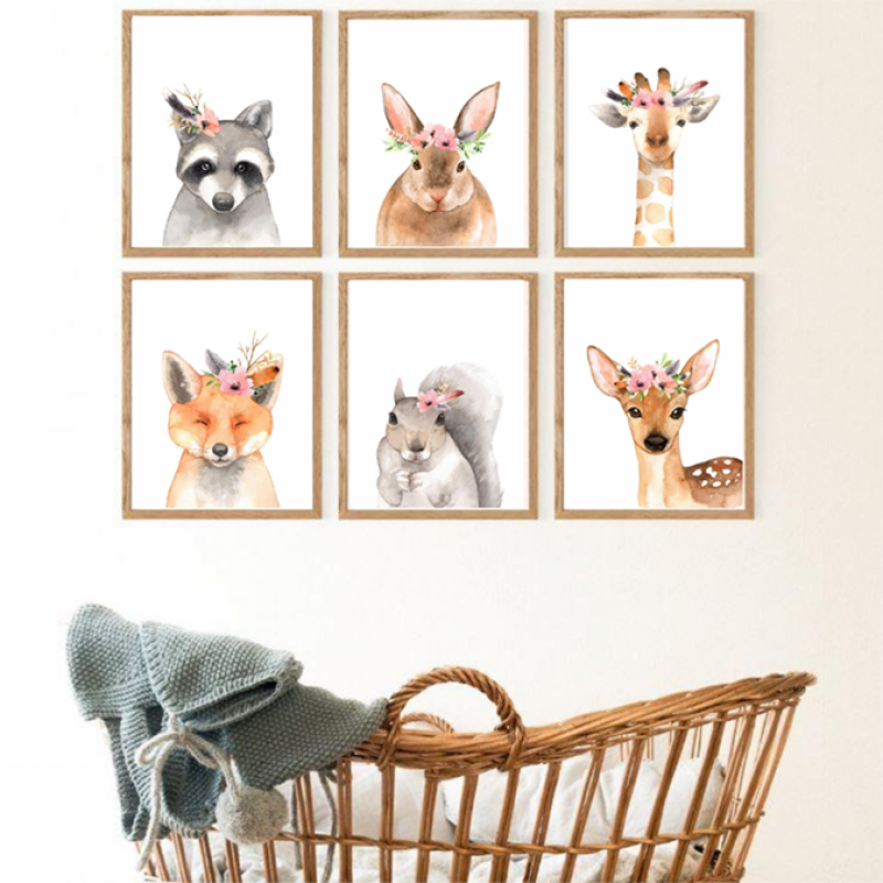 Set of 6 - Watercolour Woodland Animals Wall Art Prints