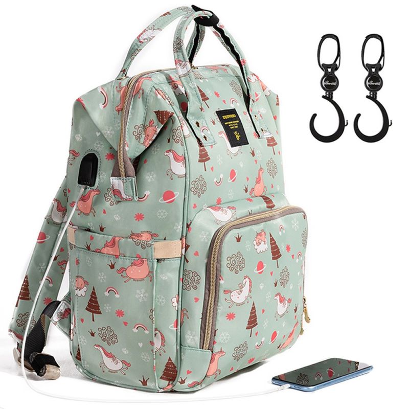 حقيبة حفاضات Sunveno Green Dream XL مع خطافات عربة أطفال Sunveno