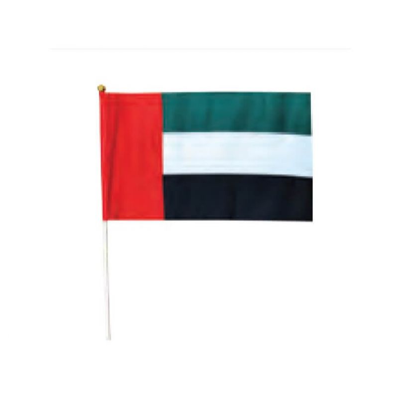 علم يدوي لدولة الإمارات العربية المتحدة مقاس A5 مجموعة من 12 قطعة - خشب (سطح ذهبي)