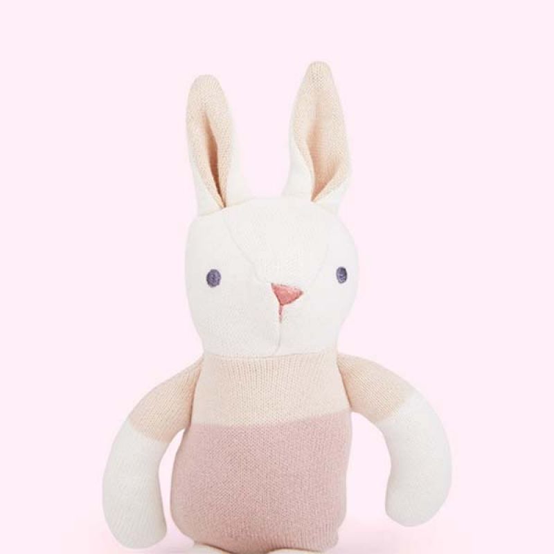 Designed and made by ThreadBear Design These soft bunnies are the perfect gift for a baby. Crafted from GOTS certified organic cotton inside and out, they are kind to even the most delicate skin. Little ones will cherish these adorable baby rabbits and will love to cuddle up to them for sleepy time. The cream bunny doll is finished with soft pinks and a pom pom bunny tail. Suitable from birth. Product size: 35cm (H)