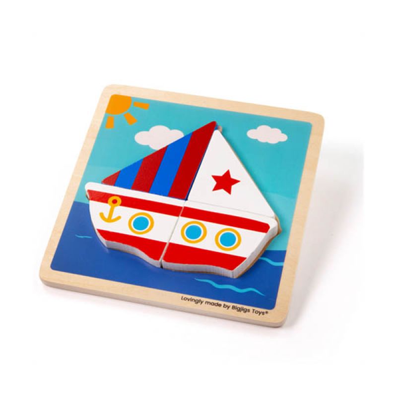 The perfect first wooden puzzle for tots, our Chunky Lift-Out Boat Puzzle has four chunky puzzle pieces that make a boat. A great way for busy little hands to grasp, place and examine as well as learn about boats. This wooden puzzle for toddlers comes complete with a smooth wooden baseboard with a pretty ocean scene. Toddlers can begin their journey with counting too, counting the puzzle pieces from 1 to 4. Also helps to develop fine motor skills and dexterity. Age: 10 Months+ Product dimensions: 15 x 15 x 1.5cm Made from high quality, responsibly sourced materials. Coated in non-toxic paints and lacquers. Conforms to current European safety standards. Check full collection of Bigjigs Toys here