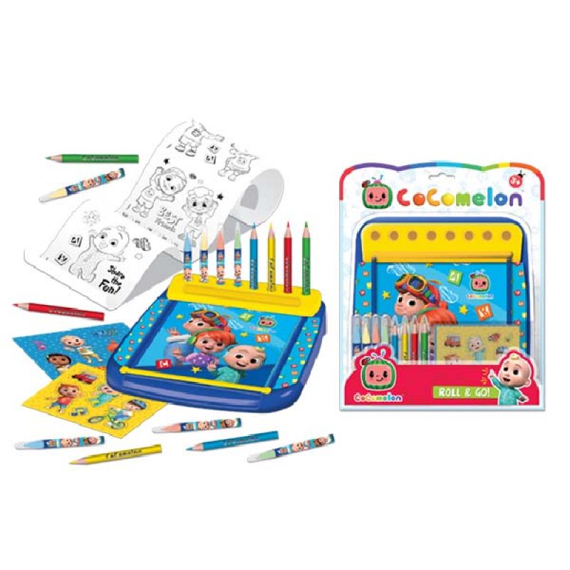 //php include('more-sellers.php'); ?>Desk, Coloring Roll, 4 Water Based Coloured Fibre Pens, Colored Pencils, and Sticker Sheets