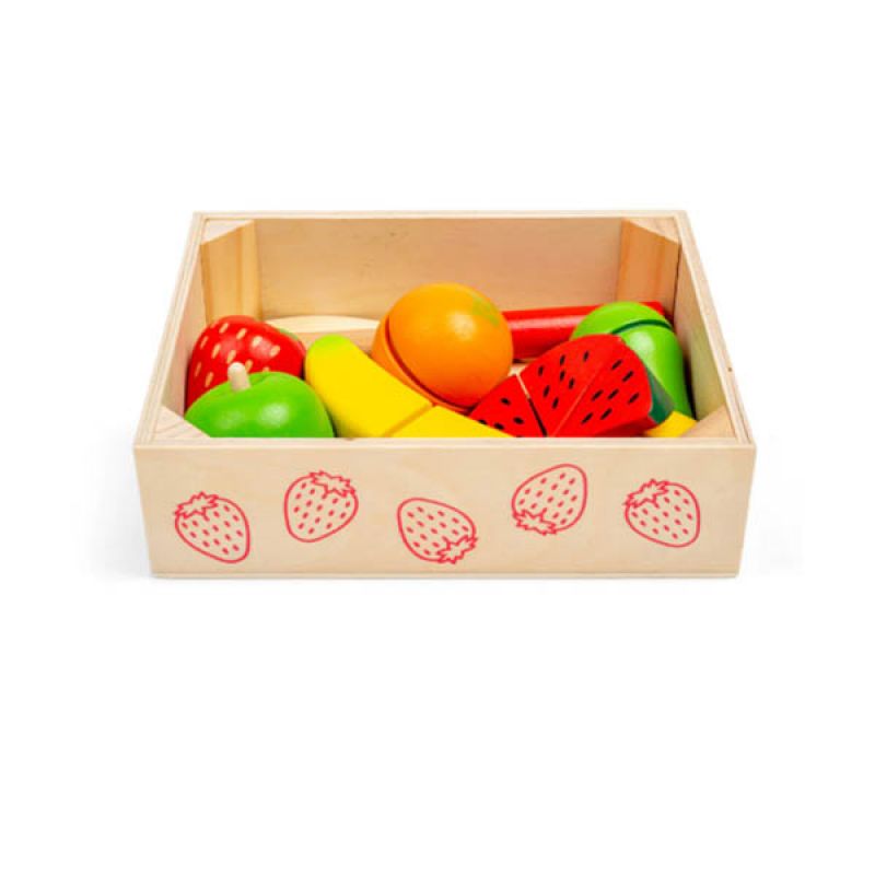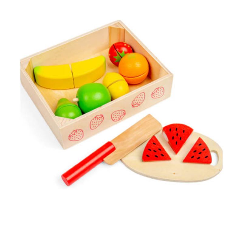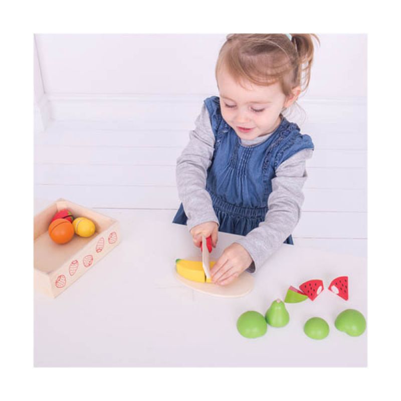This brightly coloured crate of wooden play food includes a selection of different fruits that can be sliced up carefully and accurately with the aid of a wooden knife. Set includes: 7x Different kind of fruits; apple, pear, orange, lemon, strawberry, banana and melon! Wooden Knife Storage crate Chopping board Ensuring complete safety, your little one can chop the fruit up on the supplied wooden chopping board. A great way to learn about kitchen safety. Bigjigs Toys wooden play food is ideal to help your little one to learn about the importance of a healthy and balanced diet, where our food comes from and how we prepare our meals. Once playtime is over, the wooden food can be stored back in the storage crate. Age: 18 Months+ Product dimensions: 18 x 5 x 14.5cm Made from high quality, responsibly sourced materials. Coated in non-toxic paints and lacquers. Conforms to current European safety standard