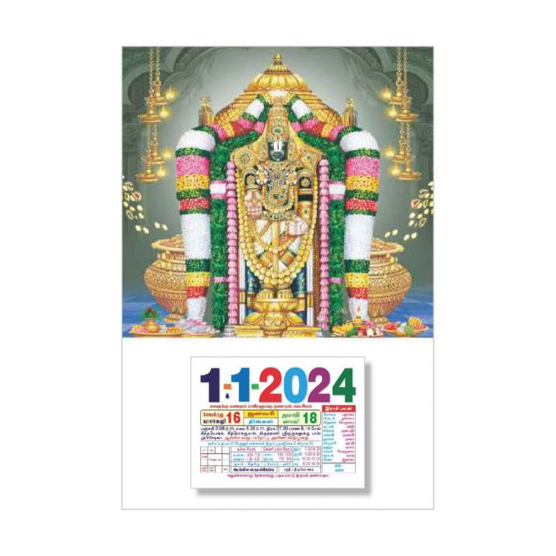 1. Daily Tamil Calendar with single picture printed in double-colour and pasted on premium quality polyboard.