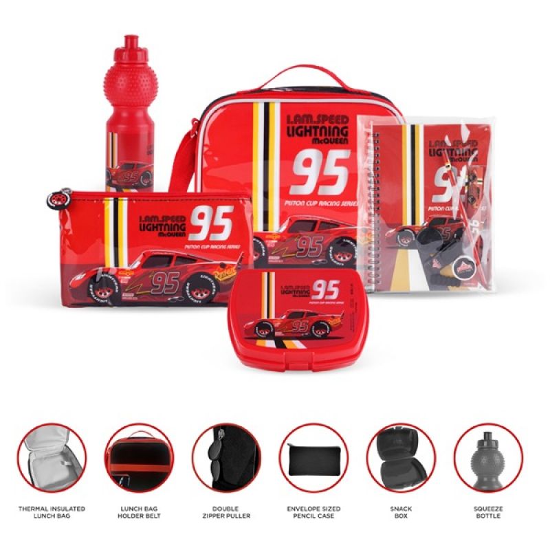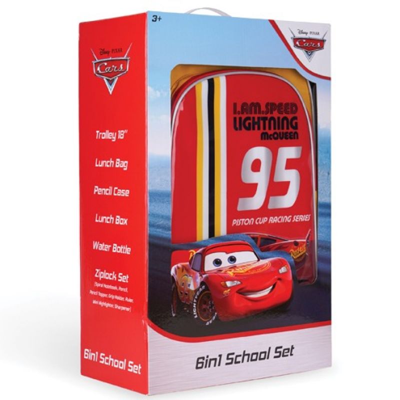 Rev up the excitement with the Disney Cars I Am the Speed Lightning McQueen 6in1 Box Set! This 18" box set is designed for fans of the iconic Lightning McQueen from Disney Cars, offering a comprehensive collection of items that are perfect for school, play, or travel. Get ready to hit the road with style and practicality!