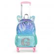 Eazy Kids 17" Set of 4 Backpack w/4 Wheel Trolley, Lunch Bag and Pencil Case - Girl Glitter Green