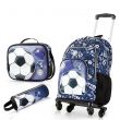 Eazy Kids 18" Set of 4 Backpack w/4 Wheel Trolley, Lunch Bag and Pencil Case - Football