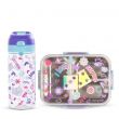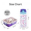 Eazy Kids 3 Compartment 800ml Stainless Steel bento Lunch Box w/ Water Bottle - Floral Purple