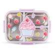 Eazy Kids 3 Compartment Stainless Steel bento Lunch Box, 800ml - Cup Cake Purple