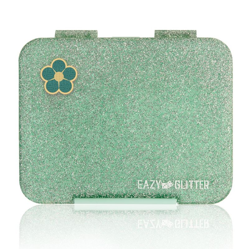 Eazy Kids 6 & 4 Convertible Bento Lunch Box w/ Water Bottle - Glitter Green