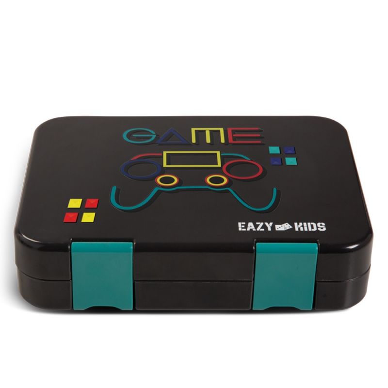 Eazy Kids 6 & 4 Convertible Bento Lunch Box w/Steel Spoon & Fork Set and Alphabets Sticker - Gamer