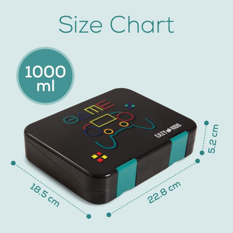 Bento Boxes, Redefined! Get ready to pack delicious, fun-filled lunches with the all-new Bento Lunch Box by Eazy Kids. Crafted from premium Tritan™ material, this box is not only BPA-free but also free from BPS and all other harmful bisphenols—making it a safe, durable, and eco-friendly choice for your child. Whether you're prepping a light snack or a hearty meal, this lunch box transforms to suit your needs with a smart, removable two-partition tray that switches easily between 4 or 6 compartments. With a unique Slant Mouth Opening for easy food access and a top layer lined with a silicone leakproof seal, it’s perfect for everything from thick yogurts to sauces—no spills, no mess! The removable top and inner lid make cleaning a breeze, and the lunch box is both microwave and dishwasher safe, giving parents one less thing to worry about. Plus, it's built extra strong to handle everyday school adventures. This Bento Box comes in a variety of vibrant colors and includes a stainless steel spoon & fork set and a set of alphabet stickers—because lunch should be both practical and fun! Ideal for creating nutritious, exciting meals during the Back to School season, this is more than just a lunch box—it’s a mealtime upgrade! Specifications: Product Dimensions(cm) : 22.8*18.5*5.2 Product Weight(kg) : 0.715 Packing Dimensions(cm) : 23*18.8*5.4 Packing Weight(kg) : 0.725 Material : Tritan What’s Included: 1*Lunch Box, 1*Steel Spoon & Fork Set and Alphabet Sticker.