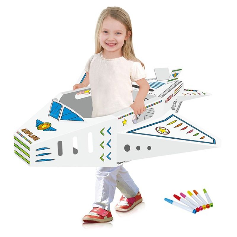 Eazy Kids - DIY Doodle Coloring Kit w/ Set of 6 Sketch Pens - Wearable Airplane