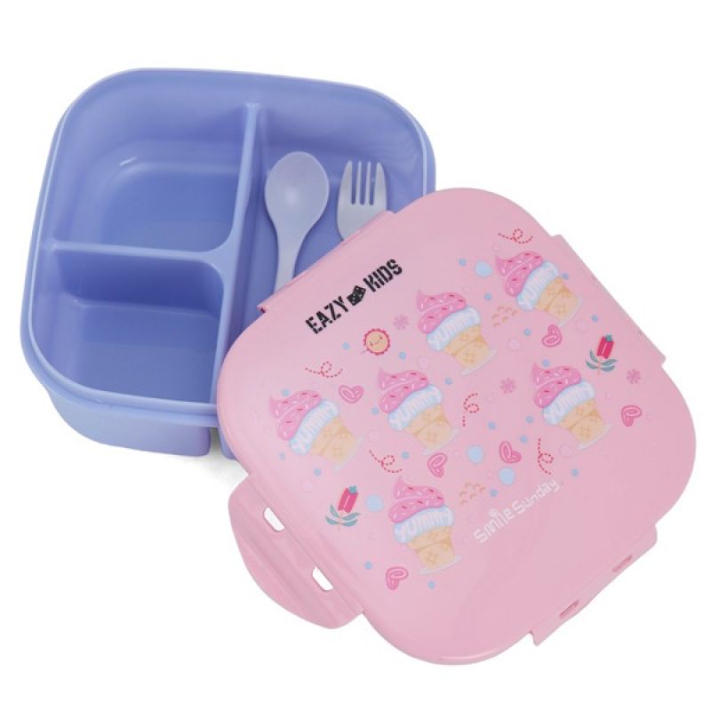Eazy Kids Square Bento Lunch Box - Ice Cream Pink
