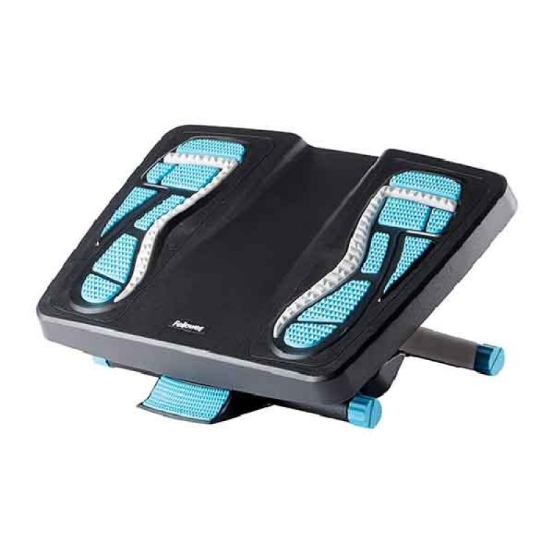 Fellowes Energizer Footrest (FEL 8068001) The Fellowes Energizer Footrest (FEL 8068001) is an ergonomic footrest facility designed to help reduce stress and improve posture under the desk, especially as a footrest for an office chair when you have a long day and work is already giving you a heavy load of stress. It features an adjustable height setting that can be easily adjusted to a comfortable height for the user compared with the footrest under the desk from Ikea. We call it the best footrest for a desk as it has a unique rocking motion that helps to stimulate blood flow, improve circulation, and relieve pressure on the lower back and legs Additionally, the surface of the footrest is textured to provide grip for the feet, preventing slipping and promoting proper foot placement. The footrest also features a built-in massage roller bar for added comfort and relaxation. This energizer is based on reflexology mapping and initiates an automated rocking motion that helps with circulation without manual effort for the movement. The footrest provides 3 platform height adjustments setting and tilts up to 25 degrees with its unique scissor motion. This product is made from high-quality materials and is designed for long-term use. It is easy to clean and maintain, making it a great addition to any workspace. The Fellowes Energizer Footrest (FEL 8068001) can help increase comfort, productivity, and overall well-being while working. This Fellowes footrest is aviled as a footrest under desk amazon and Ikea at more affordable rates cost from Sandhai. Multipurpose footrest as a footrest for desk, footrest stool, footrest for PC, and laptop tables.