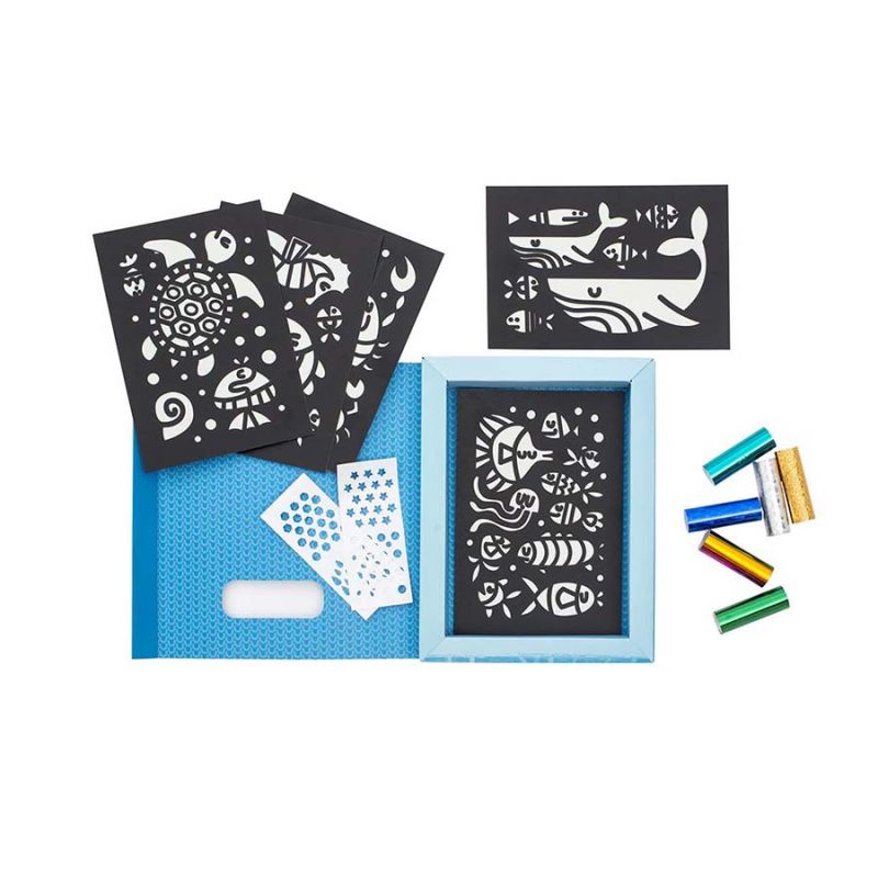 Under the Sea helps kids to create their own glistening underwater masterpiece. Whales, turtles and seahorses are all waiting to be brought alive with a sparkling rub of holographic foil!
