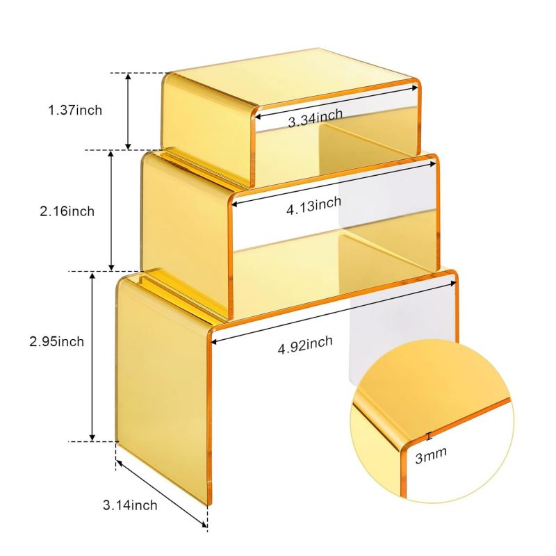Perfect for retail displays, exhibitions, jewelry showcases, dessert tables, and home décor, the risers offer a clean and organized layout for your items. Their stackable, tiered design allows for an appealing multi-level arrangement, helping maximize space and visibility.