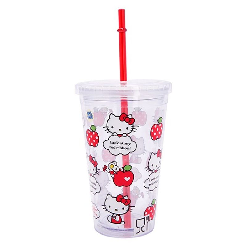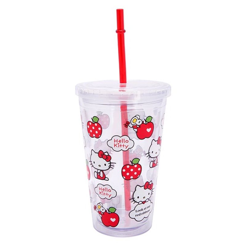 This Hello Kitty straw cup is perfect for people who are always on the go. This cup with lids and straws is made of high-quality plastic and has a capacity of 450 ml, making it perfect for holding your favorite beverage. The cup features a clear design with apple and Hello Kitty logo print, adding a touch of cuteness to your daily routine. The cup's leak-proof straw prevents spills, making it a perfect travel companion. With its compact size, you can easily fit it into your bag and enjoy your drink on the go.