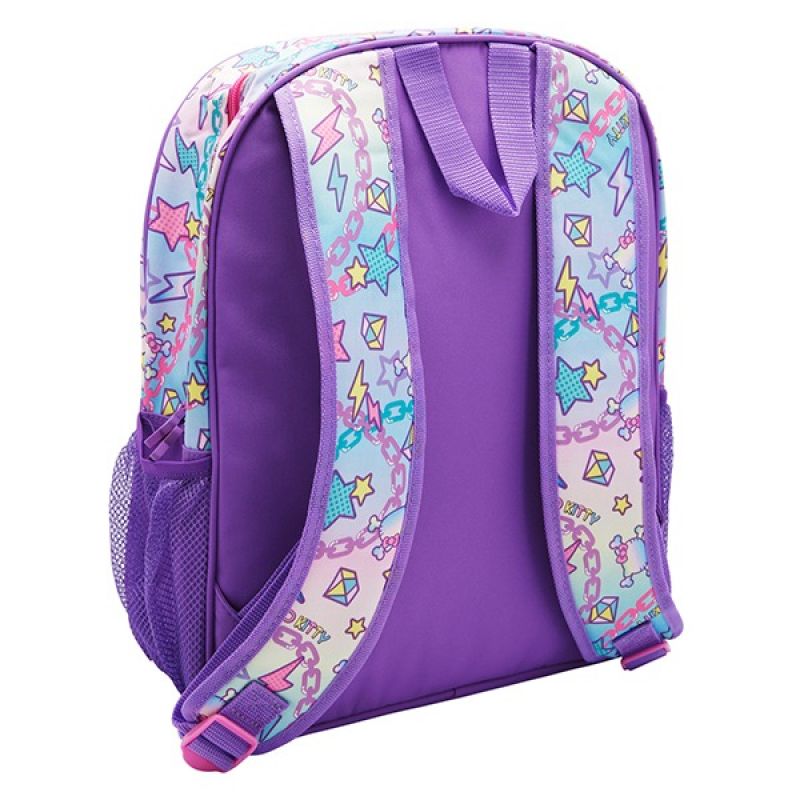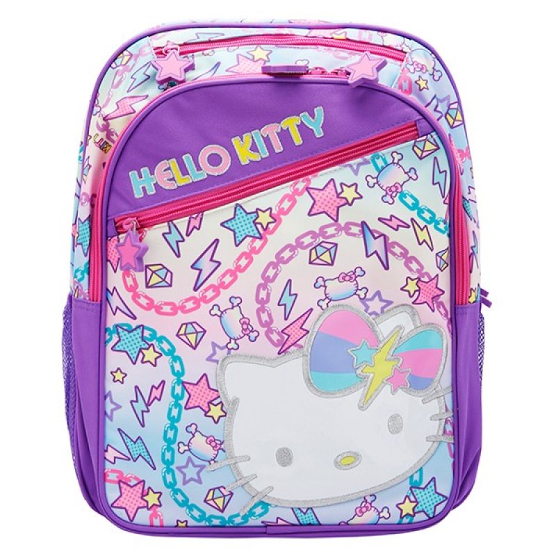 Hello Kitty Printed Backpack, School Bag, Purple The Hello Kitty Printed Backpack in Purple is a stylish and eye-catching school bag that combines functionality with Hello Kitty's iconic charm. With its vibrant purple color and Hello Kitty prints, this backpack is sure to stand out in the crowd. It features a spacious main compartment and a front zippered pocket, providing ample storage space for books, notebooks, and other school supplies. The adjustable shoulder straps ensure a comfortable fit for students of different sizes. Made from durable materials, this backpack is built to last through the school year. Whether it's for school or everyday use, the Hello Kitty Printed Backpack in Purple is a fashionable and practical choice for Hello Kitty enthusiasts. Backpack with a purple colour and Hello Kitty print Ideal for school, outings, or casual occasions Ample storage space with a main compartment and front pocket Adjustable shoulder straps for personalized comfort Made from durable materials to withstand daily use