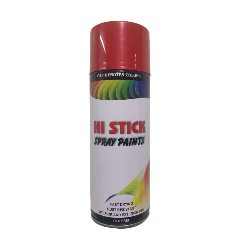 * Hi Stick Spray Paint is made from 100 % Acrylic resin and CFC free and used advanced technology. It has excellent hardness with excellent weather resistance. It exhibits great properties like good leveling, high coverage, high spray rate, fast dry, strong adhesiveness, rich color, and glossy.