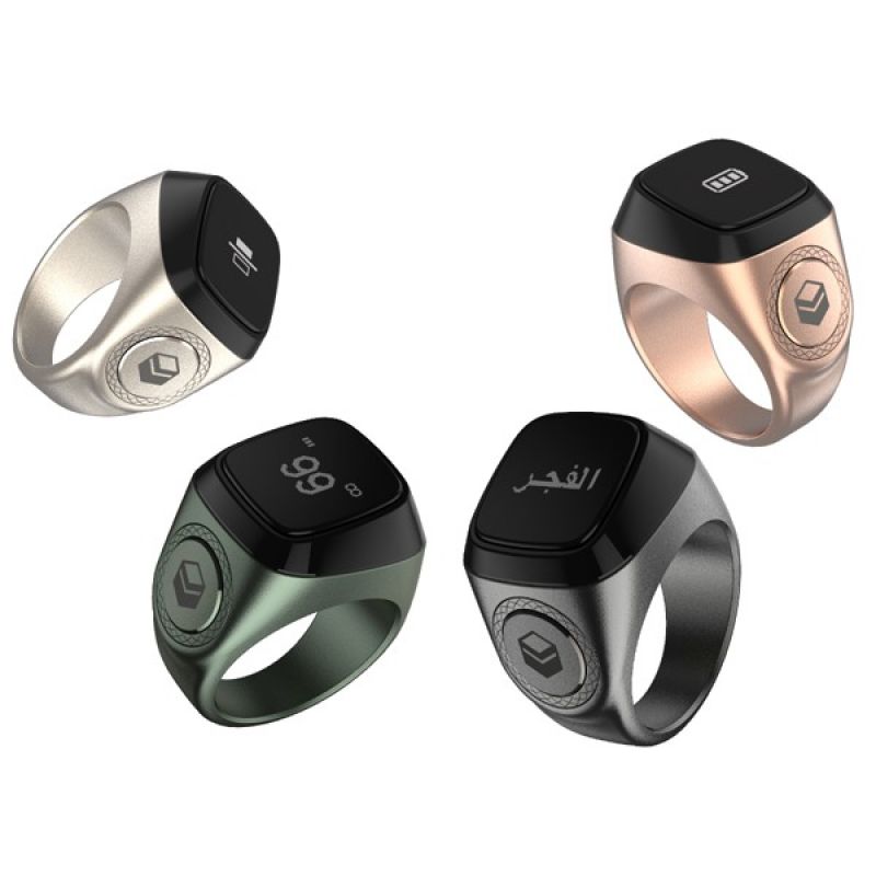 Zikr Ring, iQIBLA's world's first smart ring for Muslim prayers: "The Zikr Ring is designed to meet the needs of Muslims for tasbih and prayer times reminding, replacing the traditional Muslims prayer beads with a smart and neat wearable technology ring. The ring provides many functions, including a reminder of the five daily prayers, a Tasbih counter, in addition to displaying the time."