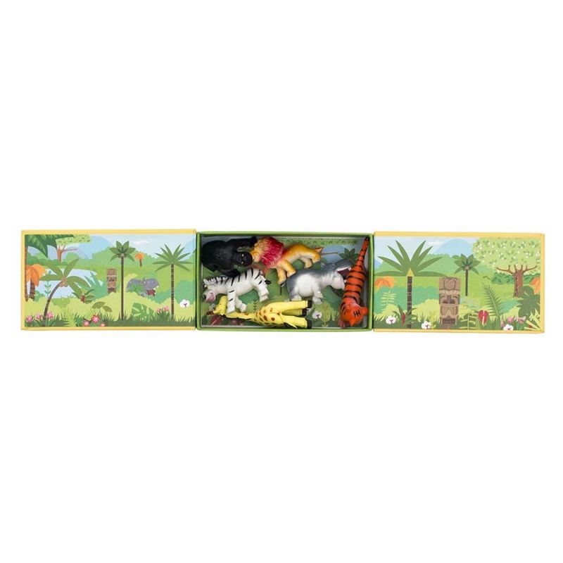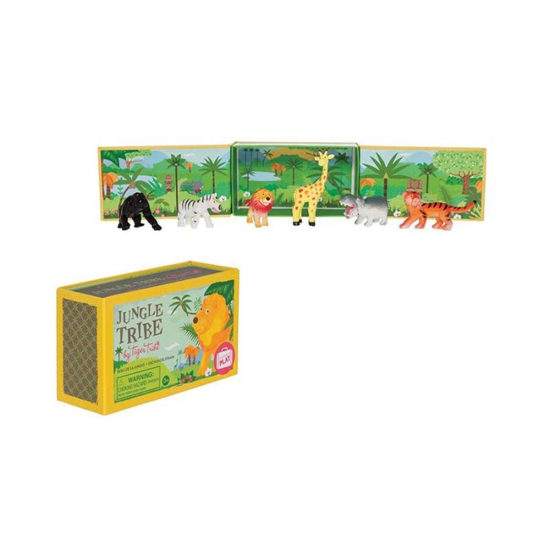 The ultimate in pocket sized portable play - now you can take your Jungle Tribe everywhere! Create your own on-the-go adventures with six little jungle animals (gorilla, zebra, lion, giraffe, hippo and the mighty tiger). And the best bit? Each box converts into a beautifully illustrated back drop for play and display. The Jungle Tribe packs up neatly and quickly into the super compact, magnetically sealed box (14cm x 8cm). Pocket sized and just perfect for kids on the go!