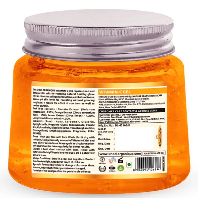 This KHADI ORGANIQUE VITAMIN-C GEL repairs dead and damaged skin cells, restoring a natural healthy glow. The gel stimulates collagen production, combats oiliness, balances skin pH levels, and reveals a naturally glowing complexion. It reduces the effect of sunburn and soothes your skin.