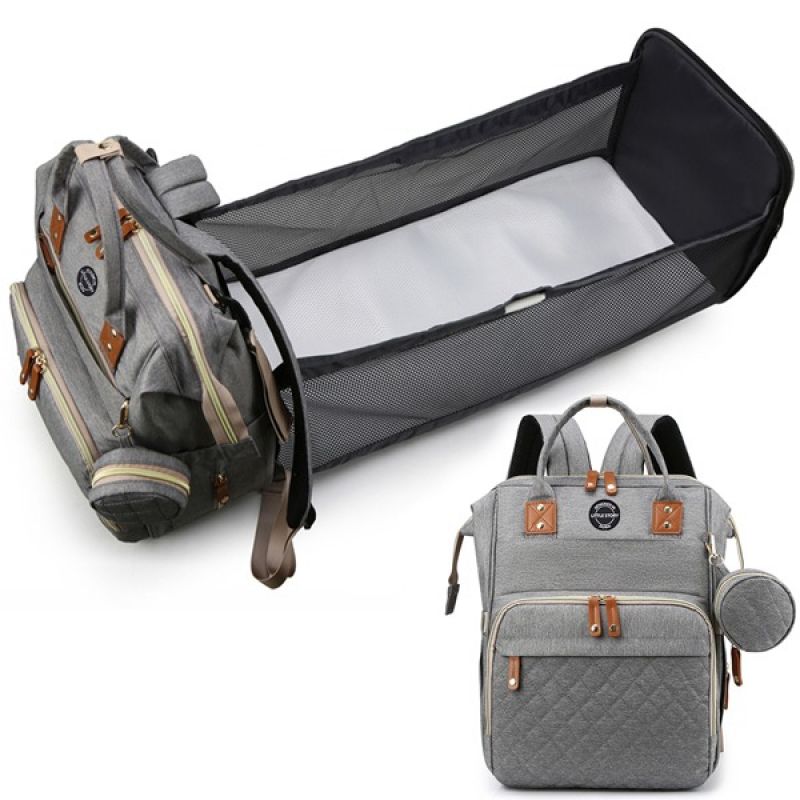 Little Story - Diaper Bag wt portable bassinet bed & pacifier pouch - Black