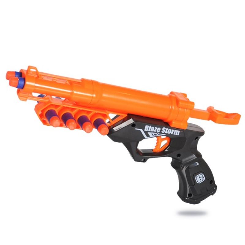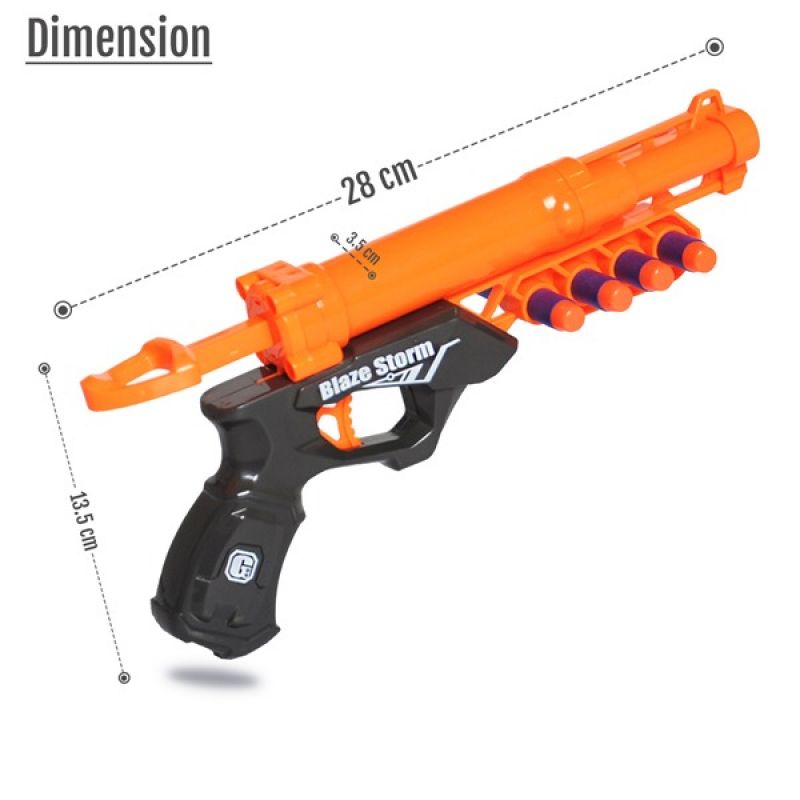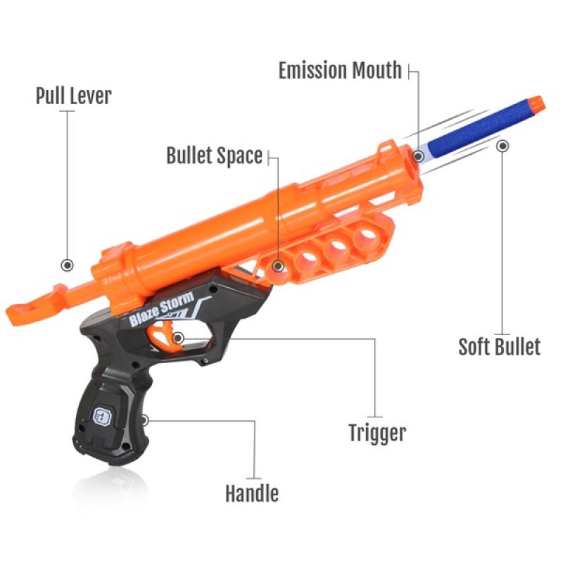 Little Story Kids Manual Soft Bullet Gun by SAMBOX comes with 10 pcs of soft bullets. Soft Bullet Gun is very easy to operate and it can load up to 4 bullets at same time.