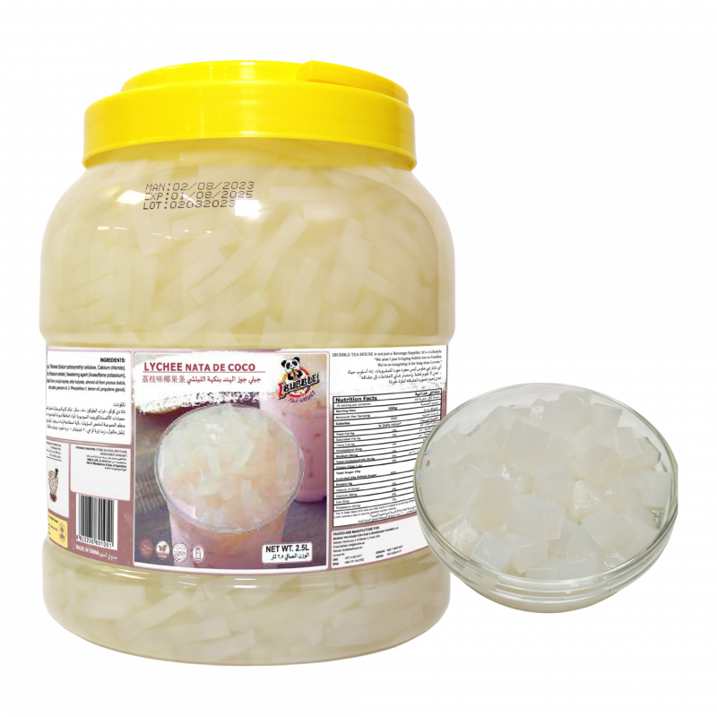 Nata de coco is known for its soft, jelly-like texture and refreshing taste, making it an ideal addition to bubble tea, fruit teas, smoothies, mocktails, falooda, milkshakes, iced drinks, ice cream, yogurt, and desserts. The sweet lychee flavour enhances every sip and bite, creating a delightful experience for customers and guests.