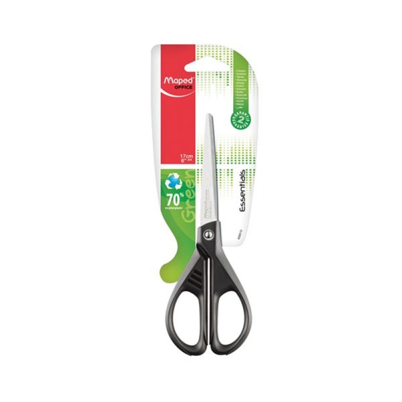 The Maped Essentials Scissor 17cm in black and a blister pack is a practical and reliable cutting tool suitable for various cutting needs. With a length of 17cm, these scissors offer a good balance between maneuverability and cutting power. The black color adds a sleek and professional look to your workspace or crafting projects. The stainless steel blades provide sharpness and durability for clean and precise cuts. The ergonomic handle design offers a comfortable grip, reducing hand fatigue during extended use. The blister pack ensures that the scissor is securely protected and preserved until it is ready to be used. Whether you're working on paper, fabric, or other materials, the Maped Essentials Scissor 17cm in black and a blister pack is a dependable cutting tool.