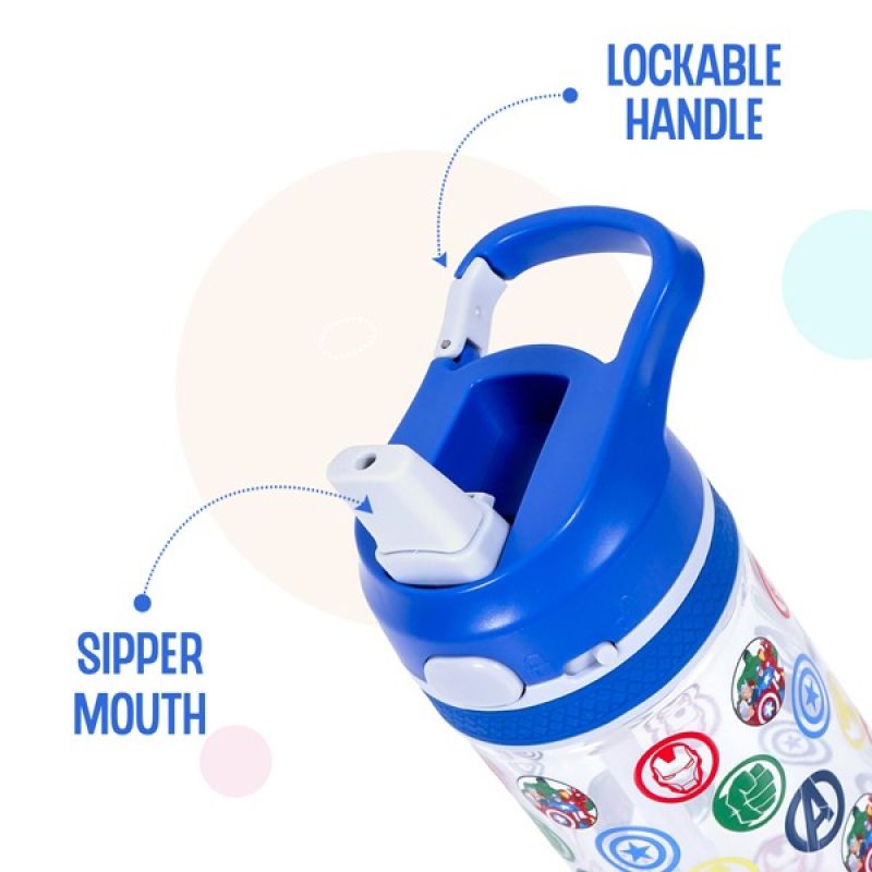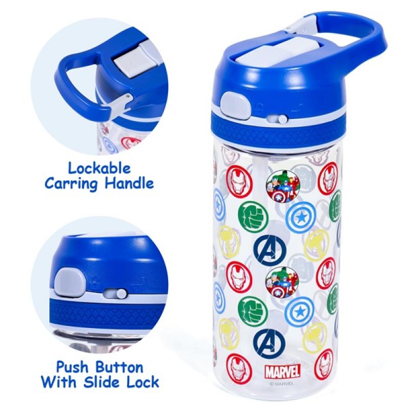 Marvel Avengers Tritan Water Bottle w / Lockable Push button and Carry Handle - Blue (420ml)