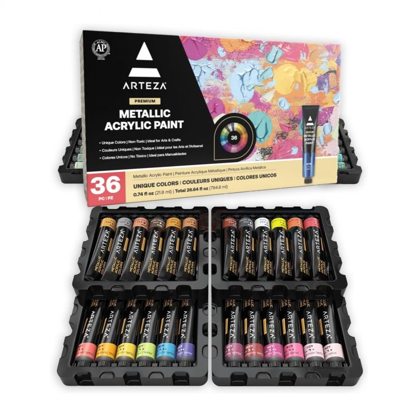 AP Certified Non-Toxic - This fade-resistant metallic acrylic paint set is non-toxic and suitable for artists of all levels.