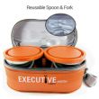 Milton Executive Insulated Lunch Box (2 Stainless Steel Container, 280 ml Each; 1 Microwave Safe Container, 450 ml) wt Lunch Bag, Orange