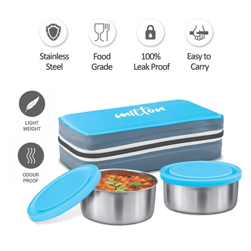Milton Mini Lunch Insulated Tiffin with 2 Containers, 560 ml Each, Blue