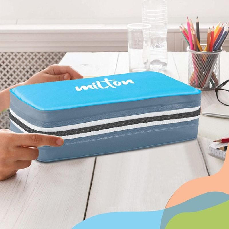 Milton Mini lunch box by SAMBOX is an ideal choice for kids going school OR office going people, it is compact and perfect for carrying a wholesome meal. Featuring 2 leak - proof containers so that you can carry a variety of food without the fear of spillage. The cover is soft insulation which keeps food hot and fresh for long hours. It contains, two round Stainless Steel containers. It is Soft insulated tiffin, which contains jacket and it is an ideal for office or any other outdoor meetings. Comes with a plastic fork and knife which have a special storage slot in the jacket. The Milton tiffin box is a great solution for carrying these meals in a stylish package. This Lunch Box helps keep your meals warm when you are on the go. Create fun filled Nutritious Lunches for your kids during this Back to School Season.