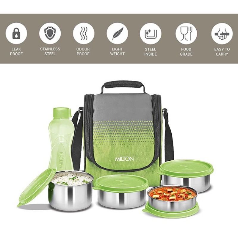 Milton Tasty 4 Stainless Steel Containers Combo Lunch Bag with Bottle, Green