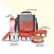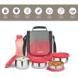 Milton Tasty 4 Stainless Steel Containers Combo Lunch Bag with Bottle, Red