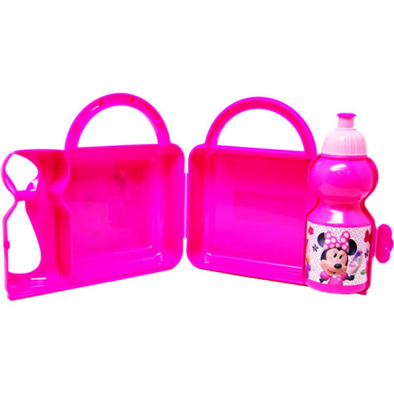 Experience the whimsy of Minnie Mouse-themed lunch box and water bottle set.